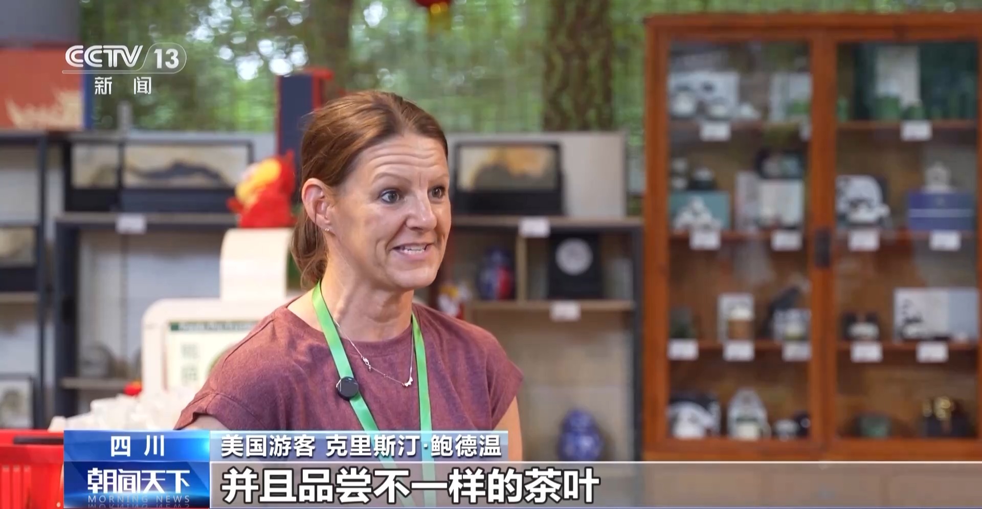 美国游客克里斯汀·鲍德温:我现在非常喜欢去茶楼喝茶,并且品尝不一样的茶叶。