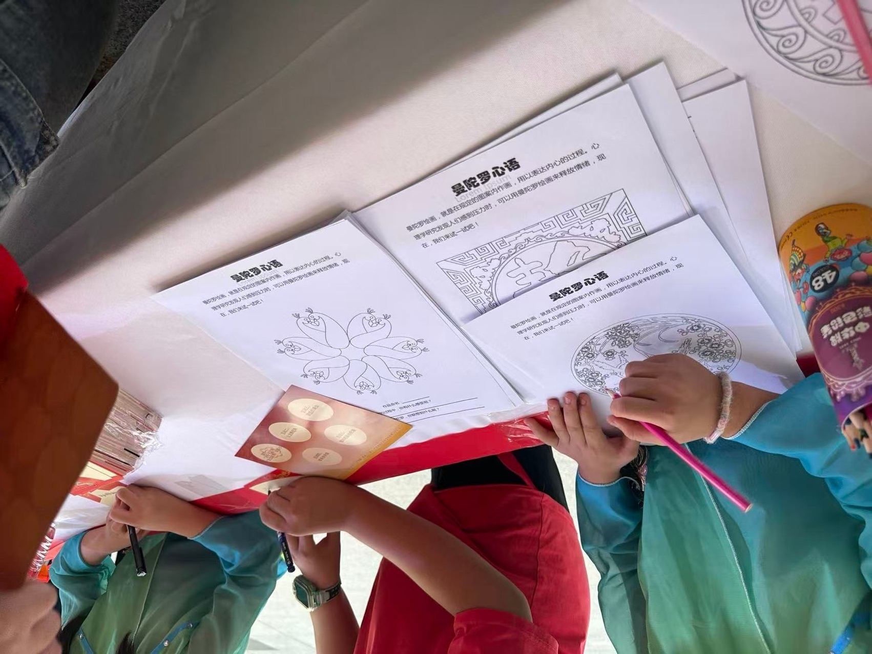 心理涂色区里,从孩童到成年人都拿起彩笔,在印有传统纹样或心理疗愈图案的画纸上尽情创作,心理咨询师胡晓燕则在一旁轻声讲解 “艺术表达对情绪疏导的作用”,引导大家通过色彩释放内心压力。不少孩子专注涂色时,还会主动和胡老师分享 “画里藏着的开心或小烦恼”;家长们也借机围拢过来,向胡老师咨询孩子成长中的心理困惑,现场满是街坊邻里交流的温馨气息。