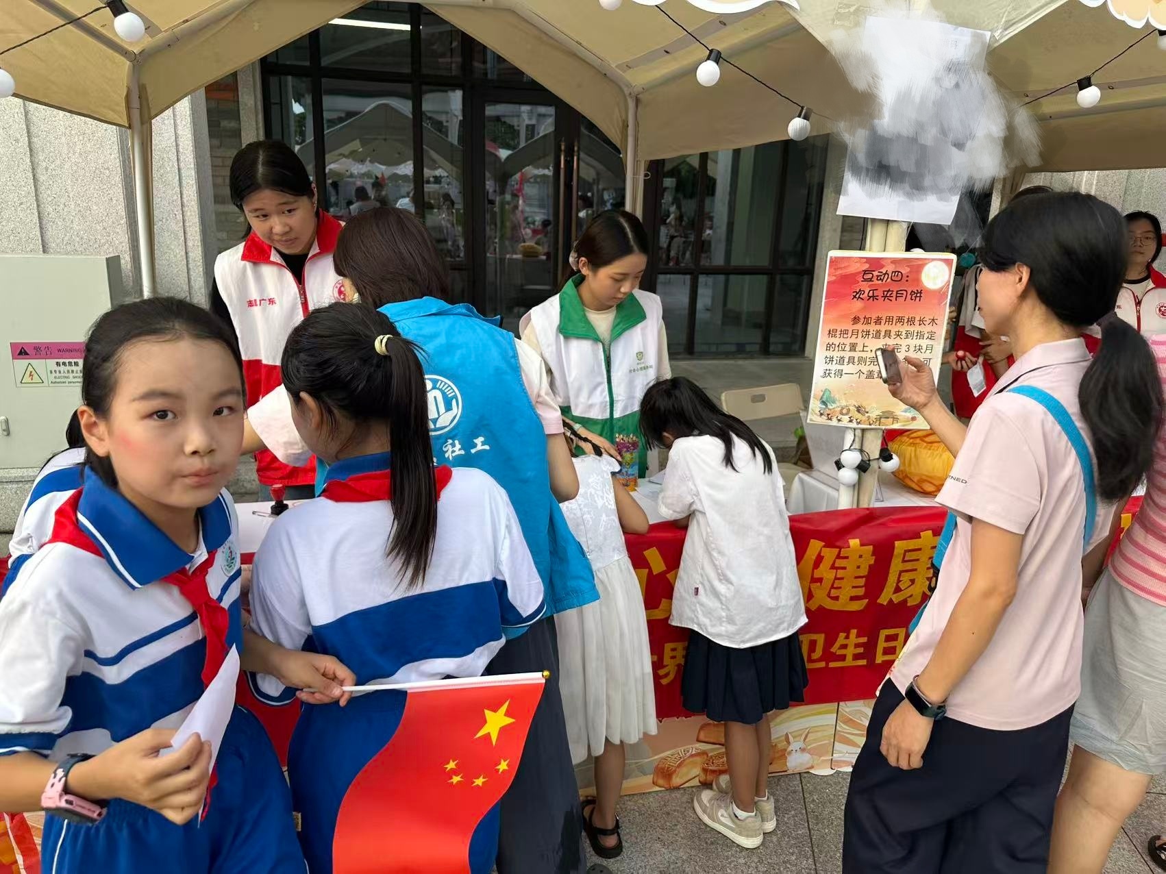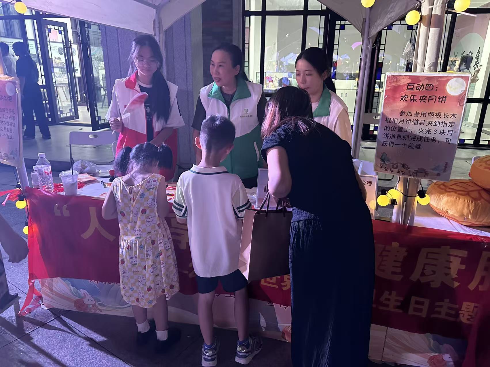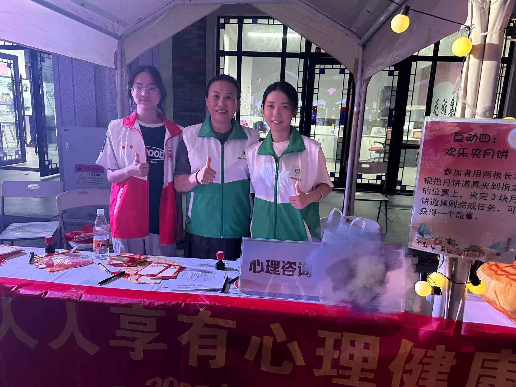 2025 年中秋国庆期间,均禾街道举办的 “清湖火龙映中秋,万家团圆贺国庆” 文艺晚会暨慈善游园会火热开展,中秋公益集市人头攒动、氛围热烈。广州白云心理医院在集市中设置专属摊位信通实盘,心理咨询师胡晓燕携手志愿者们,为均禾街道市民送上心理健康服务与暖心关怀,让欢乐节庆更添 “心灵温度”。