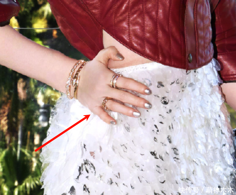 下边的白色裙子腰线的部分也很紧,导致刘亦菲侧腰被挤出赘肉,本来上衣设计露出侧腰应该是想展示曲线,这下好了,曲线没有,反倒暴露刘亦菲身材。直接打破精修滤镜,P图事故也被网友发现了。