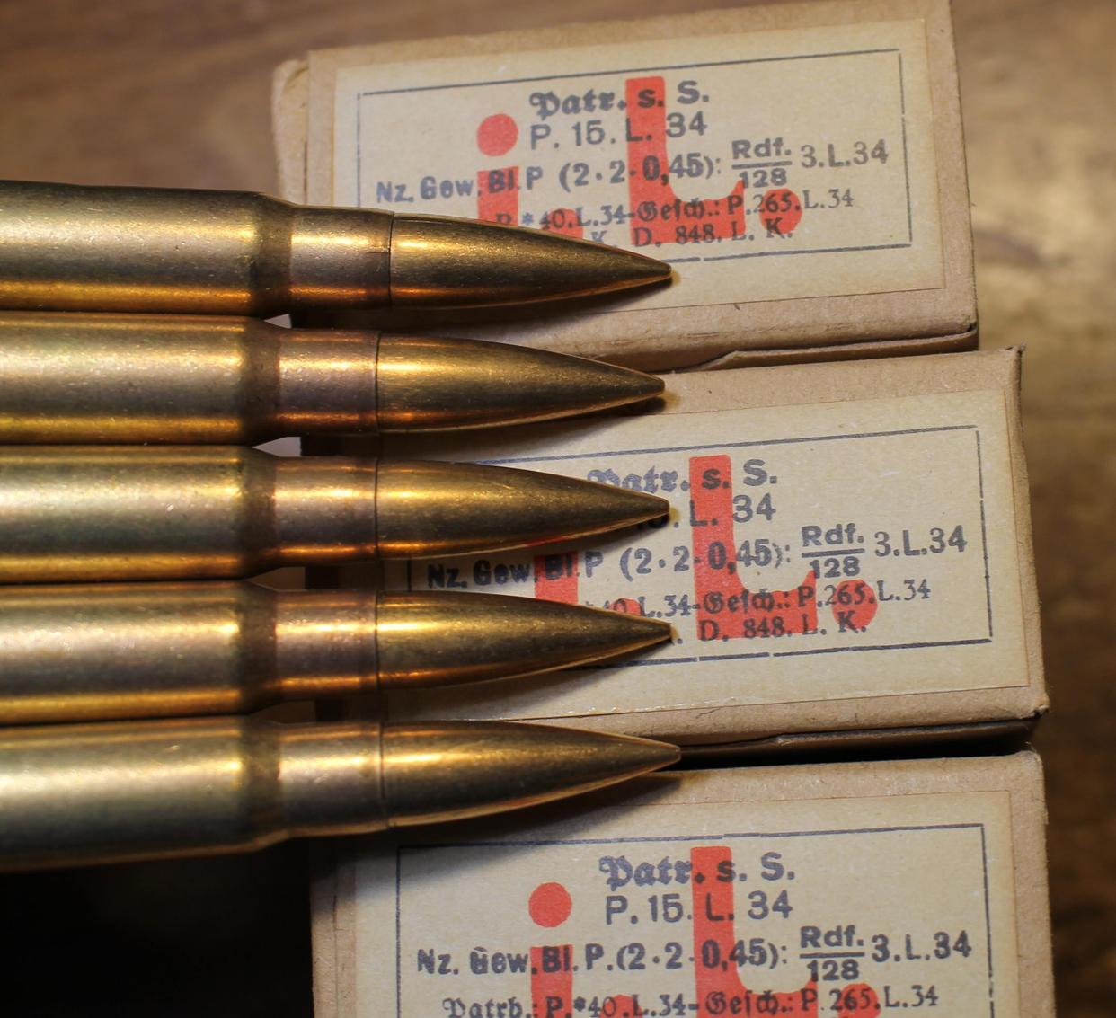 SS弹(Schweres Spitzgeschoss)重尖弹,弹头更重,适合远程射击和机枪使用,射程和精度更佳。德军的MG34、MG42机枪在远程压制时常使用此类弹药。